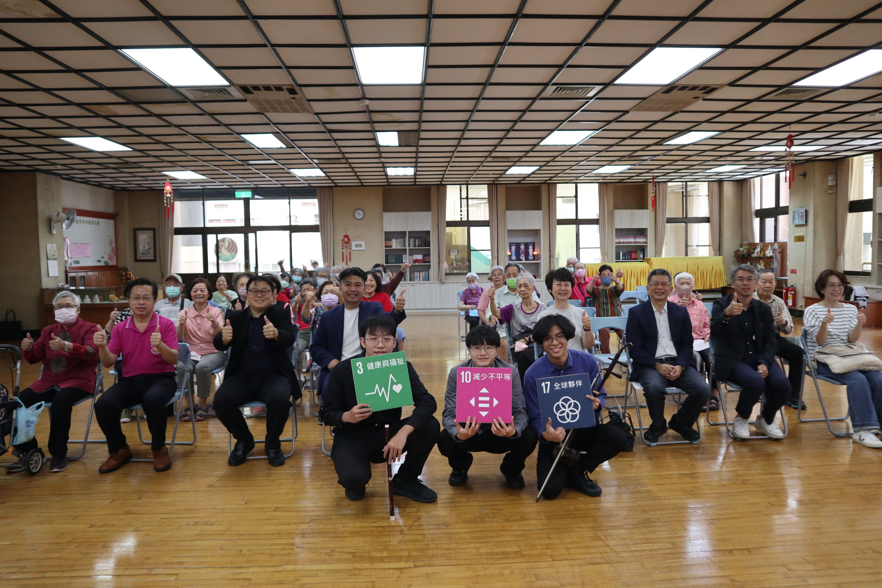 (中文) 六藝樂集在第四屆圓夢實踐計畫的支持下,到訪高雄市社會局仁愛之家、左營銀髮家園、老人公寓(崧鶴樓)、鳳山日照社福多功能中心等十一間長照安養機構辦理台語歌謠會,共帶領510位長輩及機構照護同仁重返青春時代。在長照安養機構的長輩不大可能有機會到文化中心或衛武營國家藝術中心聆聽音樂會,故六藝樂集能親自到訪機構演出,對於長輩而言是十分難得且寶貴的機會。仁愛之家的阿公阿嬤也分享參加音樂會的喜悅:「很感恩這些年輕人,願意演奏這些歌曲給我們聽,讓我們想到很多過去的往事!」左營銀髮家園的照護員也提到:「看到出來長輩們其實很開心,他們這樣開心的唱歌,對於我們而言也是一種快樂,我們的情緒也得到某種程度的慰藉。」