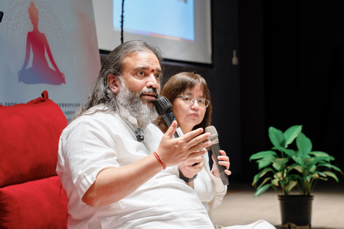 「呼吸看似再日常不過,實則是高度精密的生理與神經調控機制。」主導規劃本次講座的中山大學化學系教授兼氣膠科學研究中心主任王家蓁指出,現代呼吸科學研究發現,有覺知的呼吸能促進大腦釋放血清素、催產素與皮質醇,並活化迷走神經、調節自主神經系統,有助於穩定情緒與提升專注力,與東西方古老文明長久以來重視呼吸修練的智慧不謀而合。活動以「呼吸」為核心,整合古印度的千年瑜伽智慧並與現代科學中有關呼吸及空氣品質的最新研究進展,特別邀請總部位於印度的「生活的藝術基金會」資深印度瑜伽老師卡西吉(Dinesh Kashi ji),分享古印度瑜伽哲學如何透過呼吸節律,協助人們靜心與調節身心狀態。