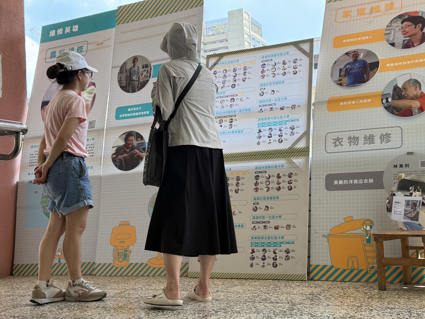 (中文) 鹽埕忠孝國小是南方修理聯盟首度響應國際維修日時成立的維修站點,不僅提供玩具維修服務,也設置玩具共享與拆解區,讓親子共同體驗修理的樂趣。今年除了現場維修服務,更推出「循環維修展」,以聯盟足跡與維修效益為核心,視覺化呈現維修的社會意義。展覽由中山大學邱花妹副教授及永續發展與社會創新微學程學生擔任解說,並有多位環境社會學、永續都市發展等課程學生到場觀摩訪調,認識城市裡的永續行動。負責導覽的莊同學表示:「從現場的人流可以發現社區裡確實有維修家電的需求,希望可以持續完善維修制度的發展,而民眾在等待維修的同時,也可以透過展覽了解循環經濟概念。」