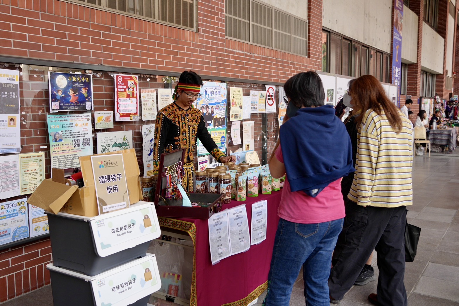 (中文) 國立中山大學「作為NATIVE 博物館的霧台-原民社會自然文化共構之永續學習計畫」於11月17日至19日舉辦「原民週市集與展示」,連續三天的活動為校園帶來濃厚的族群文化氛圍。從中庭草皮到社管長廊,校內外的展攤、展示與交流活動彼此串連,讓中山師生在學習之餘,也能透過視覺、味覺與故事,感受來自不同文化背景的能量與脈動。11月18、19日兩天,更有超過三十家校外攤商進駐校園,從原民特色選物、文創手作、飲品甜點到熱騰騰的餐食香味四溢,不僅吸引眾多學生駐足,也吸引校內外民眾共同參與,為校園增添了節慶般的熱鬧景象。