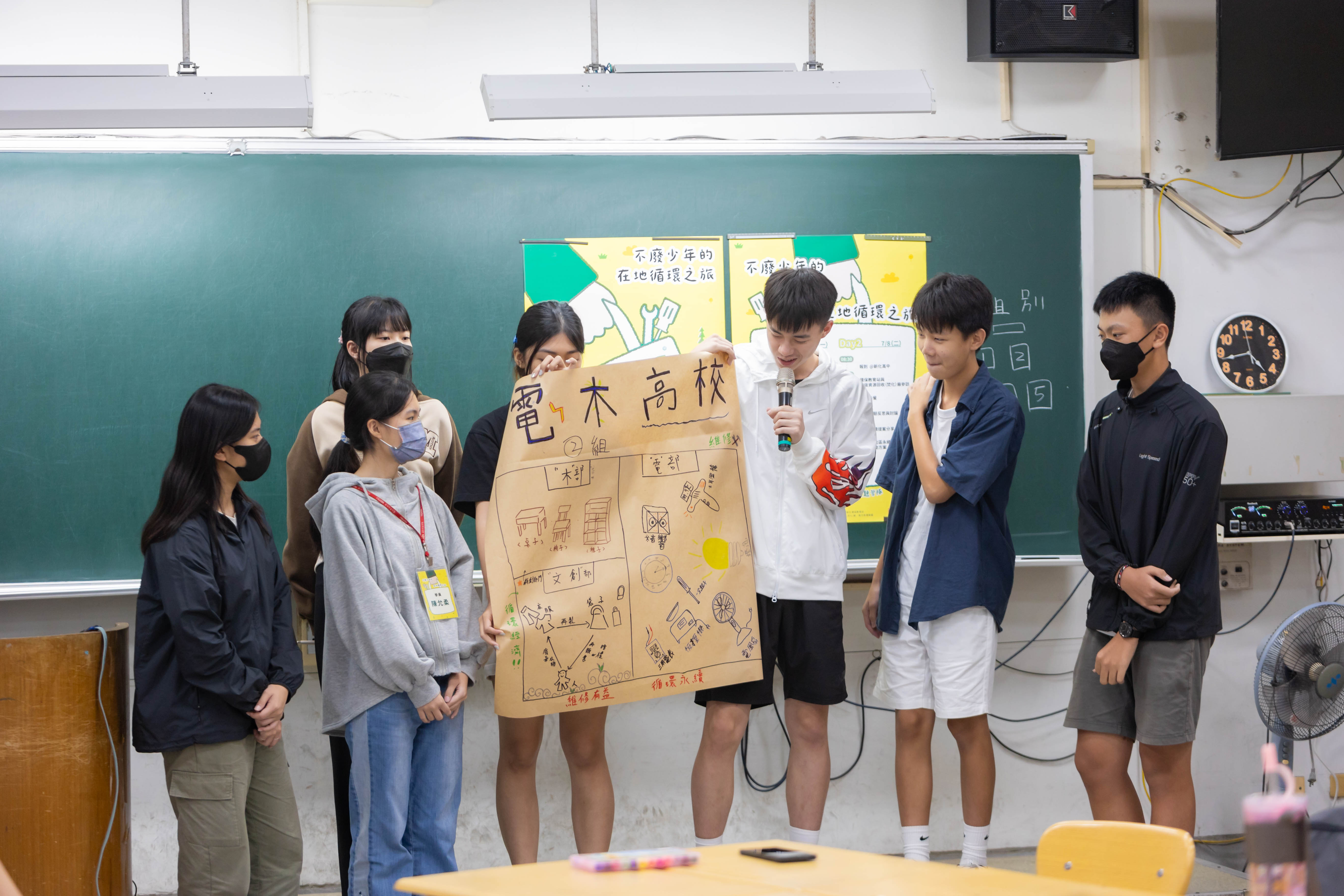 (中文) 在營隊尾聲,學員分組提出校園永續行動方案,除了針對「零剩食校園」與「無塑園遊會」提出創新提案外,更有同學提議設立「校園維修部門」,希望透過維修與改造,讓校園裡的舊物煥發新生,減少浪費,延長物品壽命。