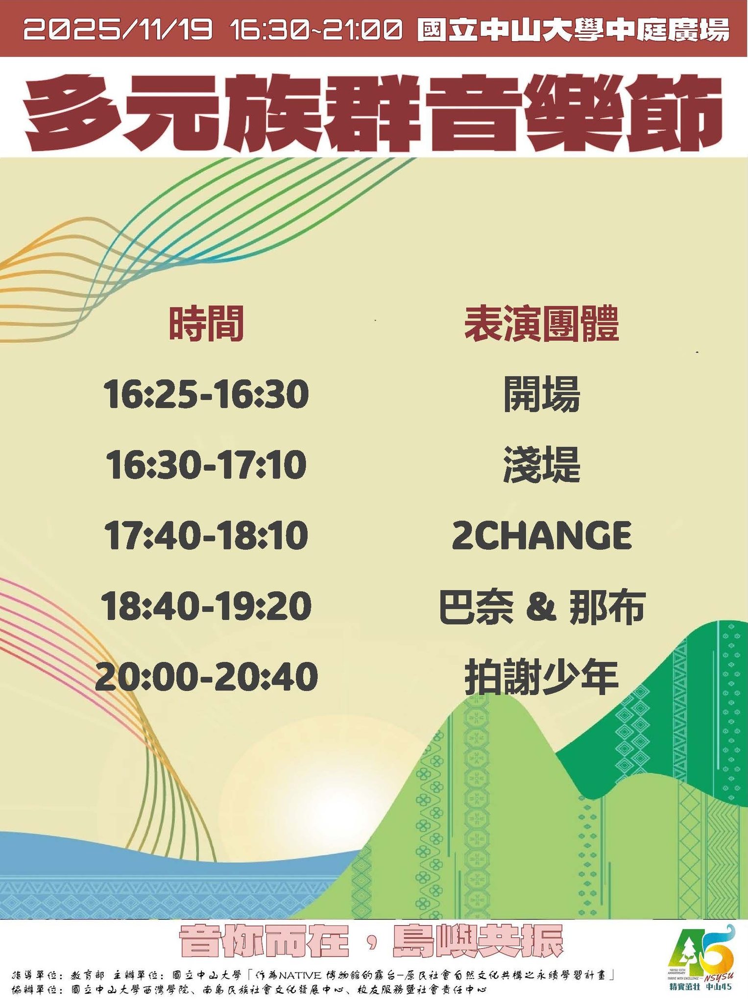 (中文) 11/19 晚上,一起在中山大學草皮感受臺灣文化的自由與多元,共同留下屬於我們的校園記憶吧!