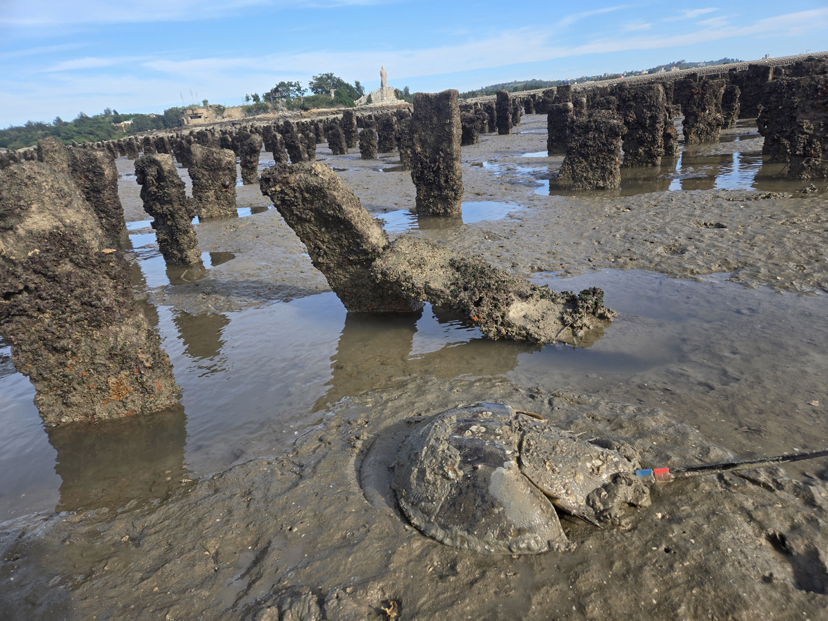 (中文) 三棘鱟是台灣常見的大型底棲節肢動物之一,擁有上億年的生存歷史,被譽為海洋生物界的「活化石」,具有重要生態功能與文化意義。過去因研究資料不足,影響相關保育政策的制定。張懿指出,自2021年起,團隊深入金門、澎湖與台灣本島等地,運用標誌放流與再捕方式,首度建立台灣周邊地區三棘鱟的成鱟與稚鱟族群量評估,整合七年資料,初步估算約有4.6萬隻成鱟,是國內首見具代表性的鱟類族群資料。