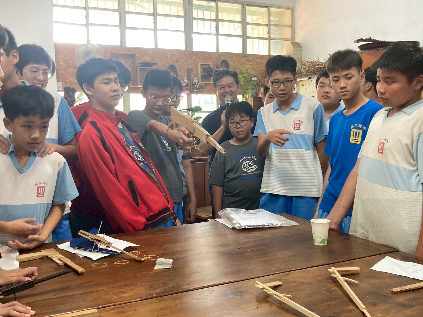 (中文) 木工課程方面,興仁國中原本即有極具特色的木作課程基礎,由「快樂木頭人」教室長期協力帶領學生創作。在此次成果發表中,學生展示了小桌子、小椅子、能夠賽跑的小型機器人等作品,並開放現場試玩兩款自製木頭橡皮筋槍,笑聲與驚呼聲不斷,也展現學生對動手創作的熱情與熟練。之後還有同屬興仁國中校區的幼兒園教師帶著小朋友來參觀,增添了許多稚氣與朝氣。