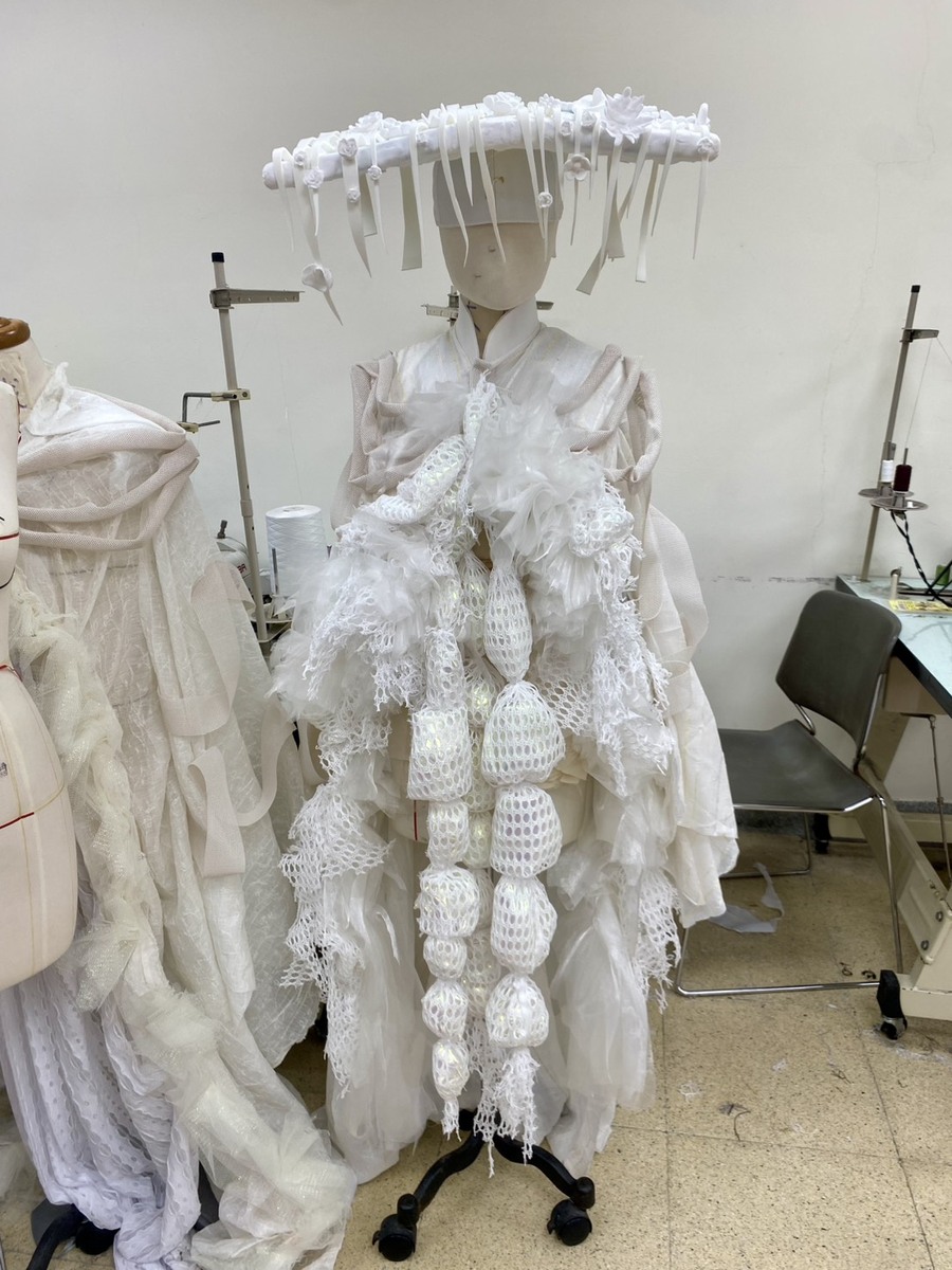 舞台設計上,中山劇藝副教授李怡賡以「樹」為核心意象,從向上生長、DNA雙螺旋到倒掛之形,象徵人類對自然秩序的反思。光影與紗布構成的空間讓觀眾彷彿置身夢中夢,展開一場深層的沉浸式旅程。擔任服裝設計的中山劇藝副教授吳怡瑱將主角的服裝設計如蝶蛹幻化,水藍色披肩的獨特機關設計,於每一場次皆呼應其處境變化的形象轉換;數個萬物精靈的服裝設計則是暗示了人類對於自然的破壞遺留下不可抹滅的傷痕。導演何怡璉進一步指出:「當我們讓風、石頭、植物都重新被看見,劇場就不再只是人的空間,而成為萬物共振的場域。」《蝶變纏身》嘗試將舞台轉化為一個呼吸的生態系,讓表演者、觀眾與環境彼此連動,體驗「一體共生」的詩性時刻。