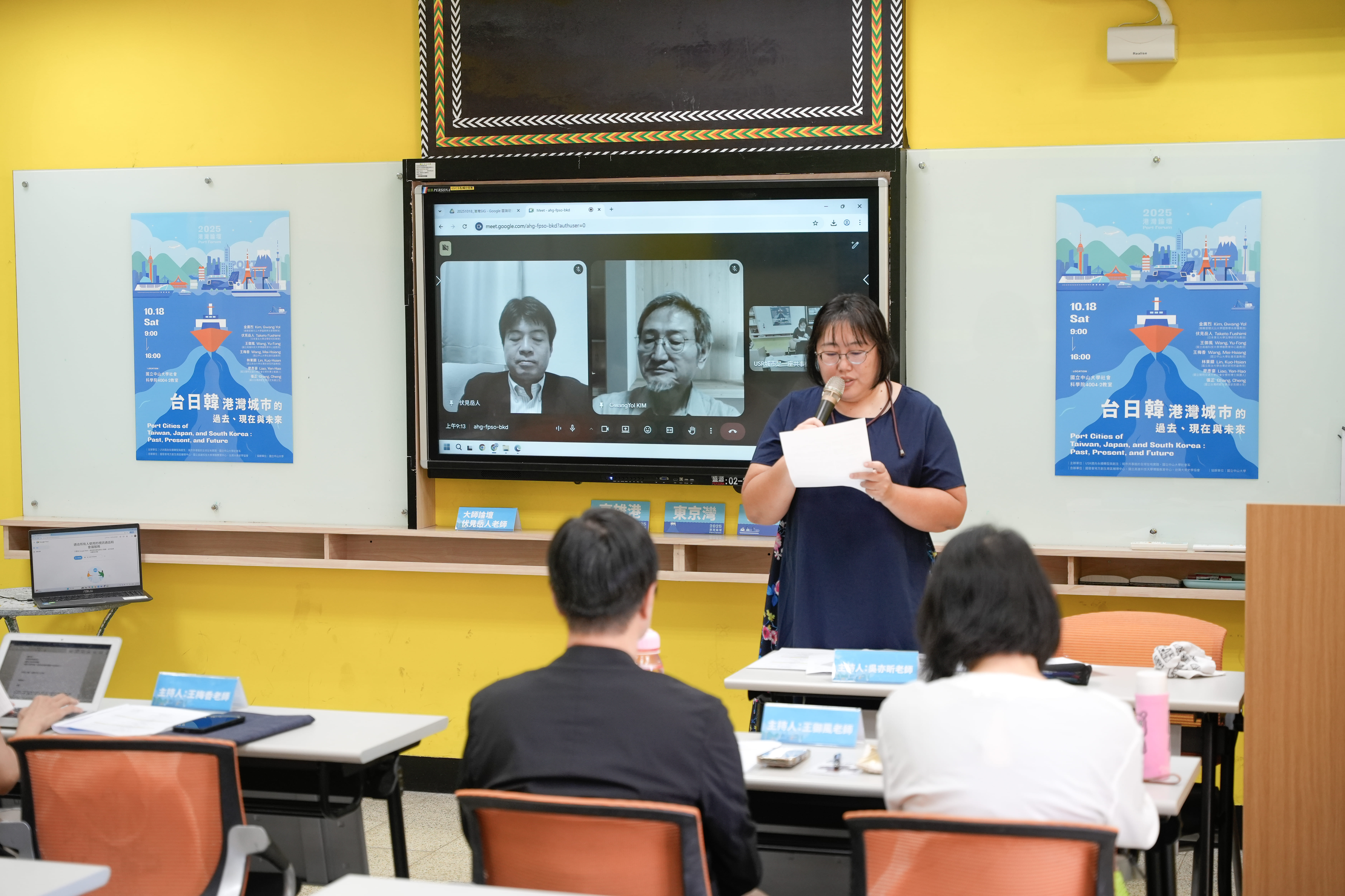 當天上午大師論壇開場由兩位日韓學者,日本東北大學法學研究科伏見岳人教授與南韓首爾光云大學國際學系金廣烈榮譽教授,分別帶來〈東京灣改造計畫和京濱運河構想〉及The rapid increase in population movement between the Korean Peninsula and Japan through Pusan Port after the end of World War II(〈二戰後朝鮮半島釜山港與日本之間的大量人口移動〉)兩篇精彩論文,兩位亞洲學者以線上即時參與的方式分享其觀點。