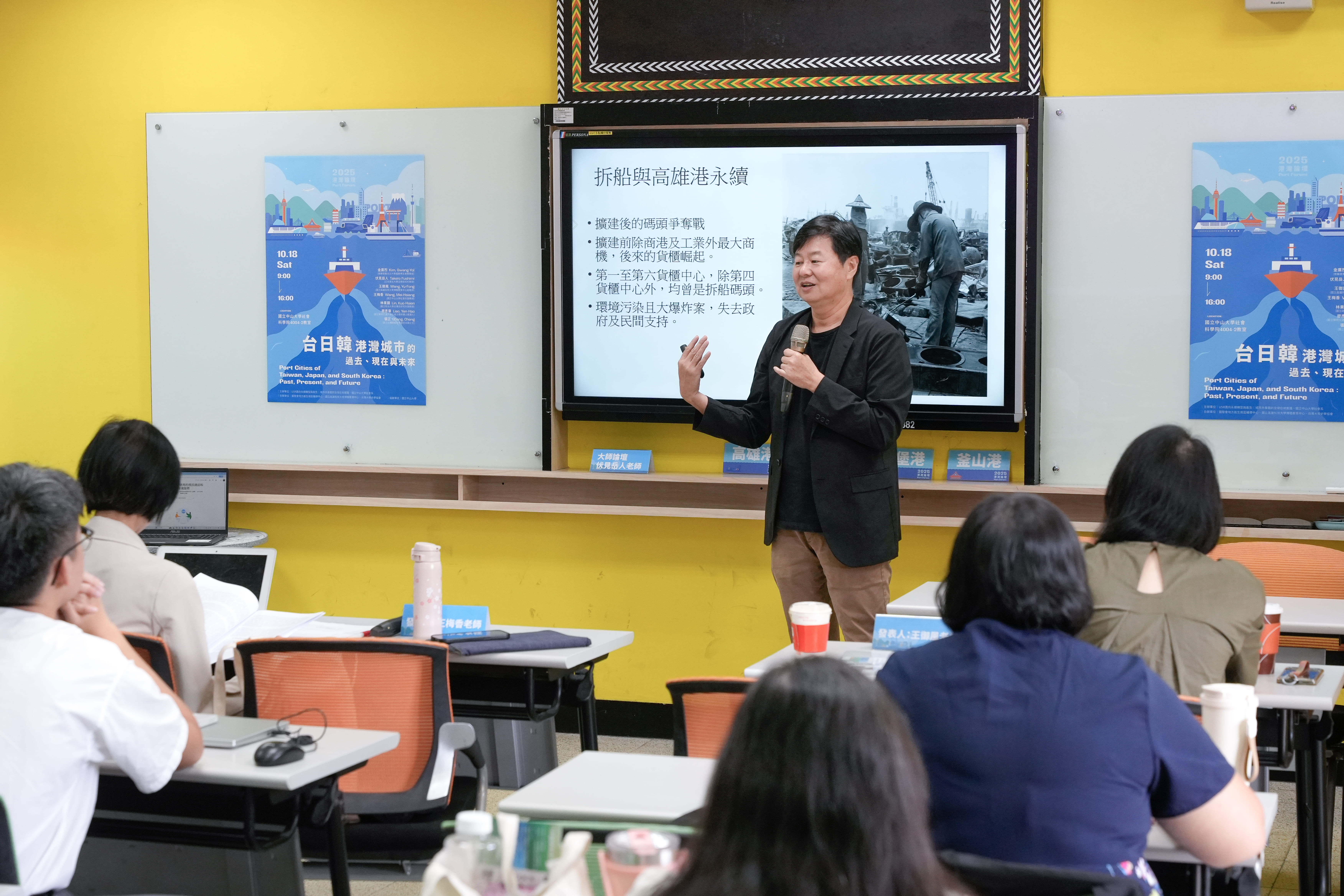 首場由國立高雄科技大學博雅教育中心王御風副教授帶來〈高雄港拆船業的興衰〉,本文談及二戰後高雄因港口沉船打撈,發展出拆船業,成為戰後主要產業之一,拆船回收的鋼材支撐台灣重建,並促成鋼鐵業興起,如南豐、東和、祥益等民間鋼鐵即由拆船業轉型而成。1958年港區擴建後,拆船業者進駐臨海工業區,產業聚落成形,1969年更登上世界第一。然隨貨櫃運輸興起、環保與公安問題加劇,1988年大仁碼頭被收回,拆船業迅速沒落,但其對高雄工業與城市發展的貢獻深遠。