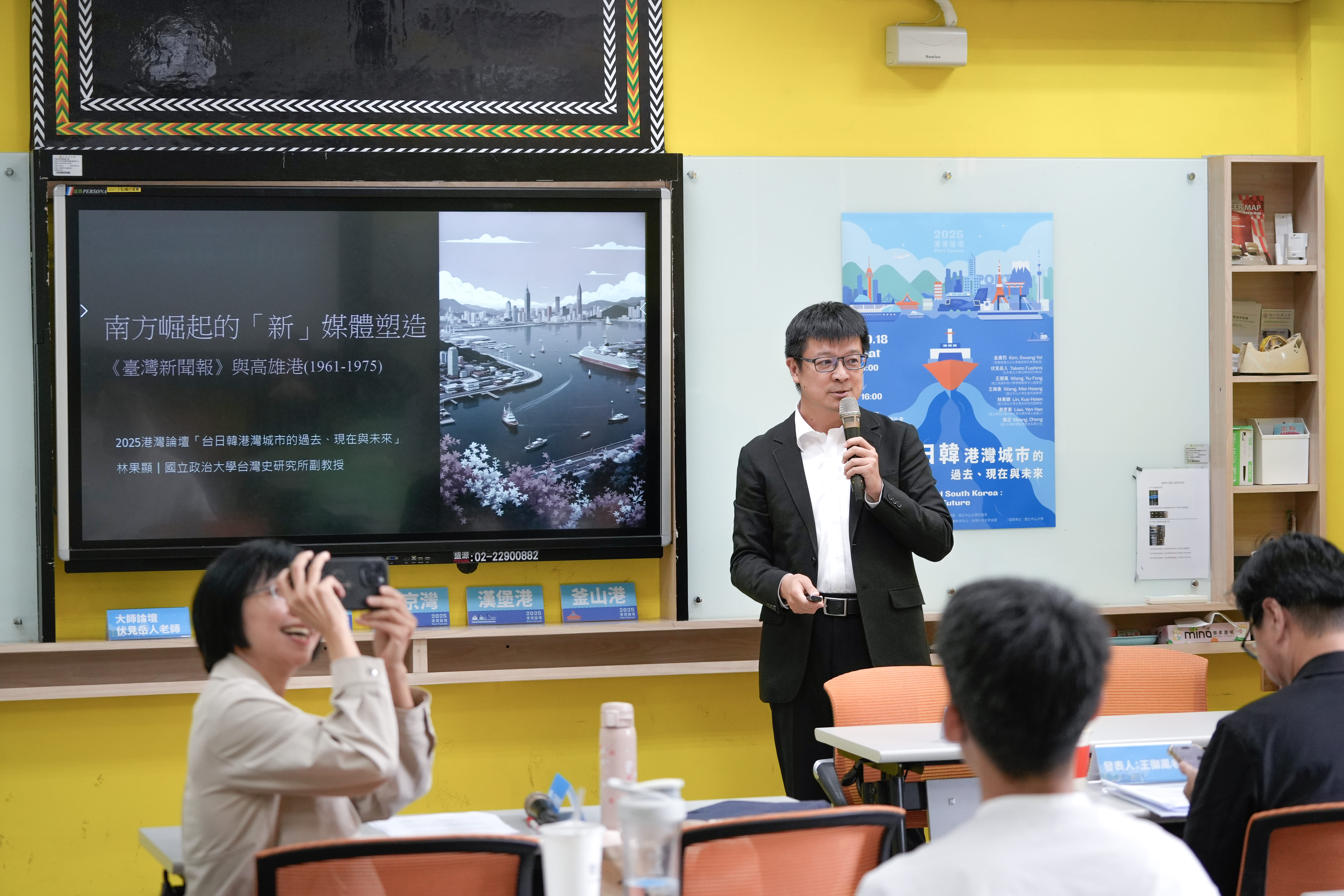 第二場是國立政治大學台灣史研究所林果顯副教授分享〈南方崛起的「新」媒體塑造:《臺灣新聞報》與高雄港(1961-1975)〉,文章探討省營報紙《臺灣新聞報》在1960年代報禁時期的成立與發展。面對宣傳衰退與中央權威挑戰,省政府為鞏固自身影響力,將《新生報》南部版改制為全臺發行的《新聞報》,並投入行政與財政資源支持,展現強化宣傳體系的企圖。《新聞報》以高雄為核心,結合地方發展與經濟議題,如倡議設立自由貿易區,凸顯其作為打造南方高雄新意象與南臺灣發聲的重要媒體角色。