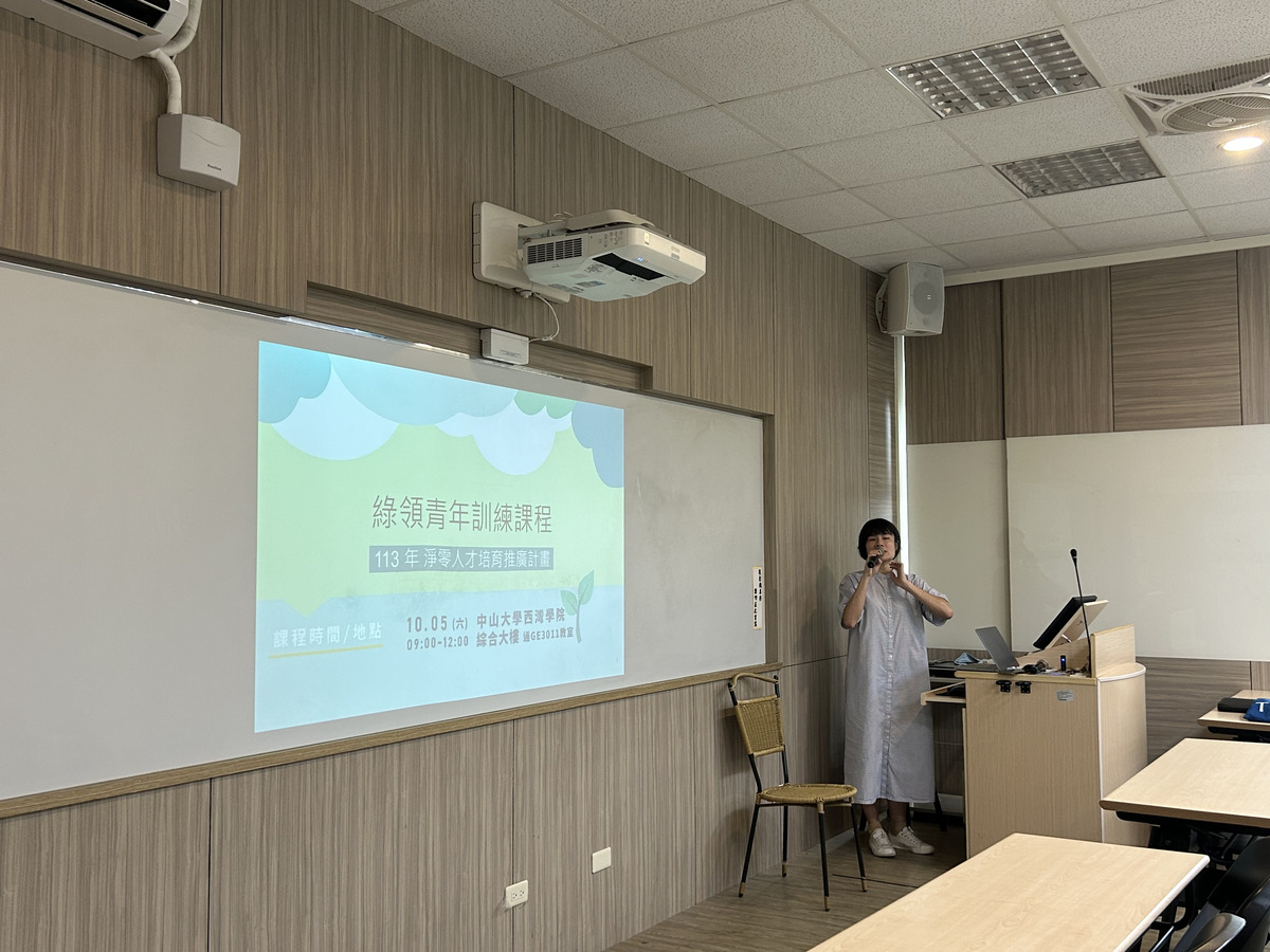 為響應我國推動2050淨零排放的十二項關鍵戰略,中山大學西灣學院基礎教育中心與財團法人環境資源研究發展基金會合作開設「綠領青年訓練課程」,邀請中山大學碳權研究與服務中心資深經理陳齊奐講授,協助學生掌握國際趨勢、國內政策方向以及職涯發展的關鍵技能。參與學生藉由分享不僅了解到全球暖化和氣候變遷的挑戰,還進一步理解我國2050淨零排放的政策趨勢、碳管理相關行動技能及人才需求。