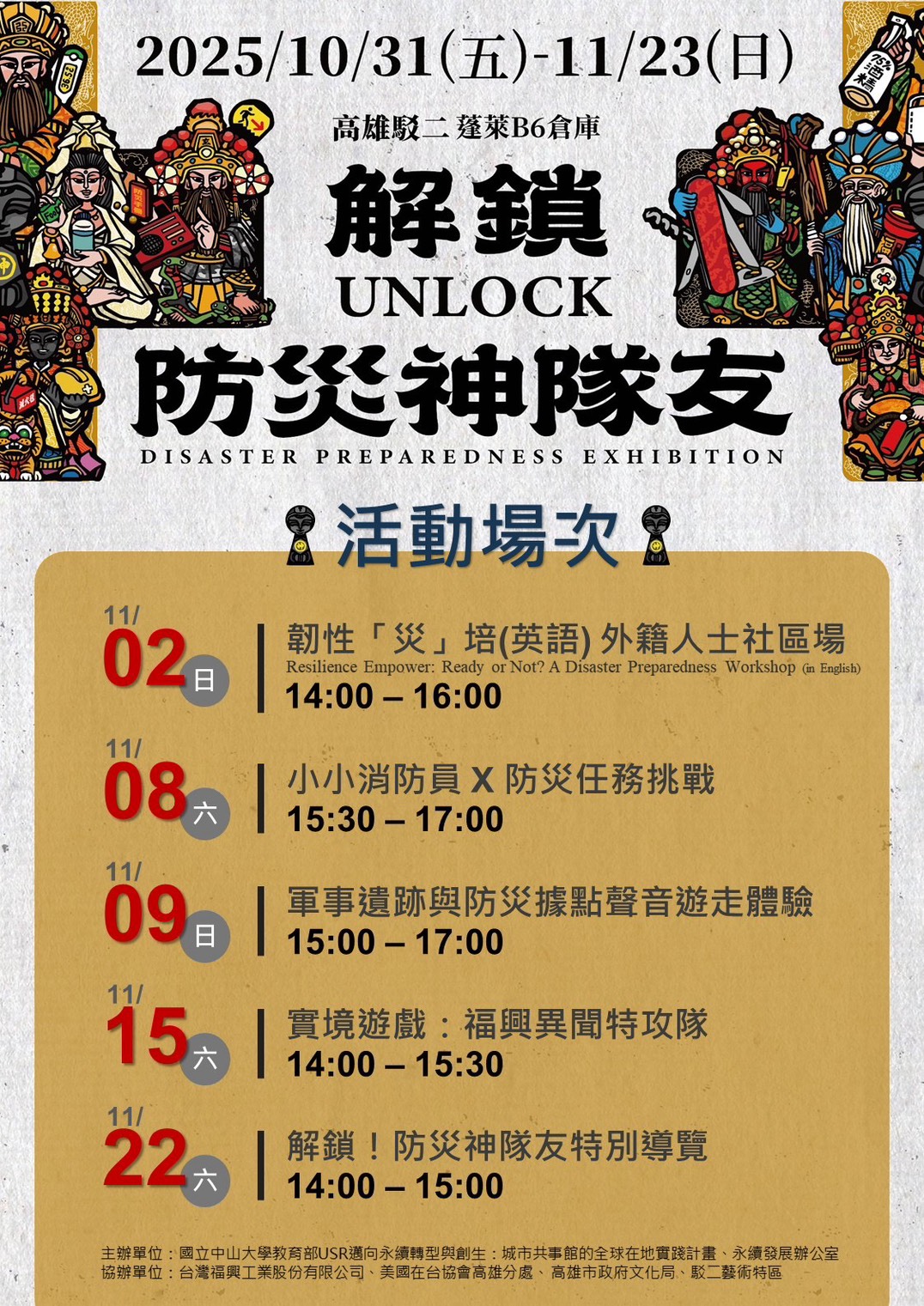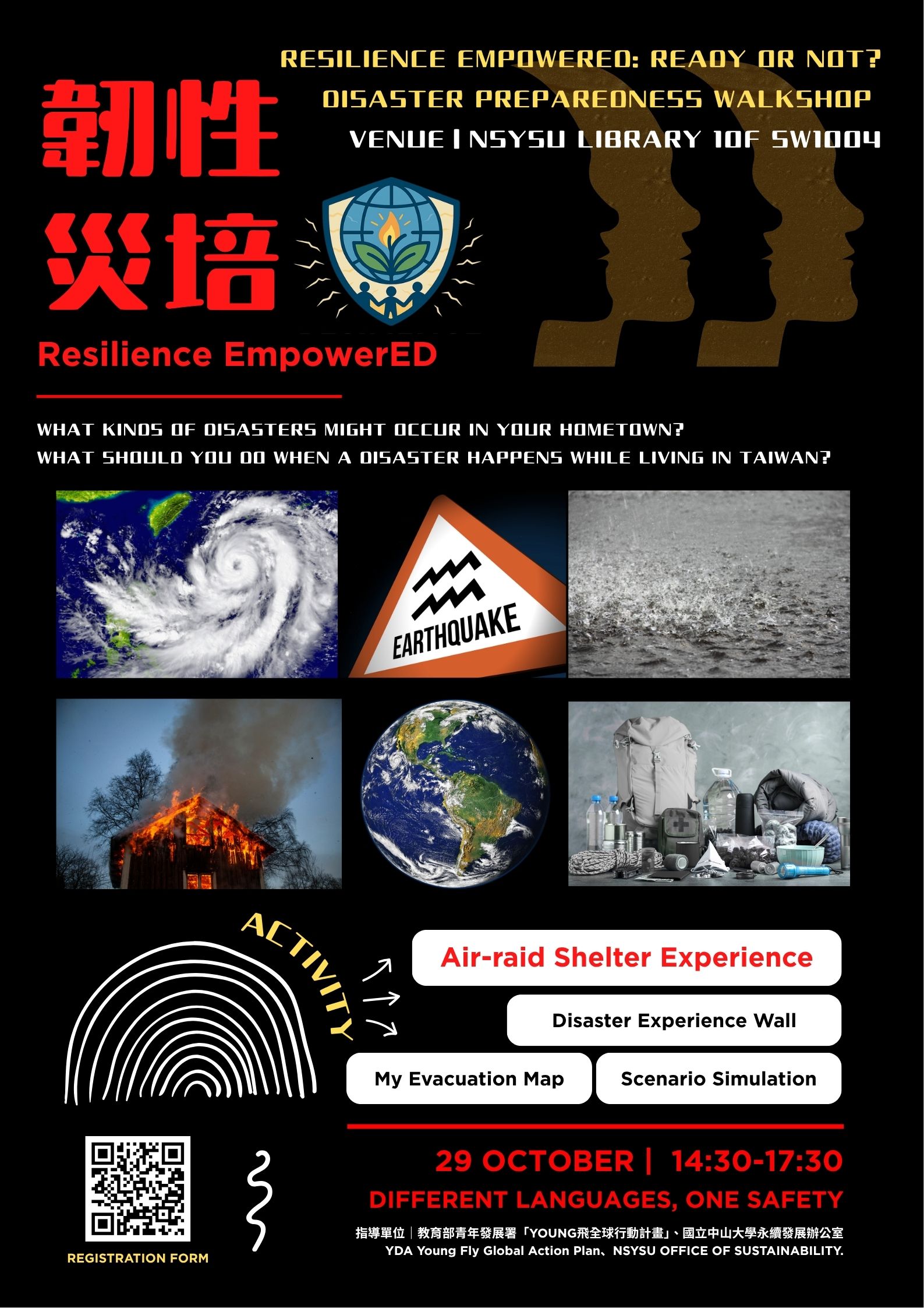 This event is hosted by the Resilience EmpowerED team from National Sun Yat-sen University (NSYSU), in collaboration with the Unlock! Disaster Preparedness Exhibition team.