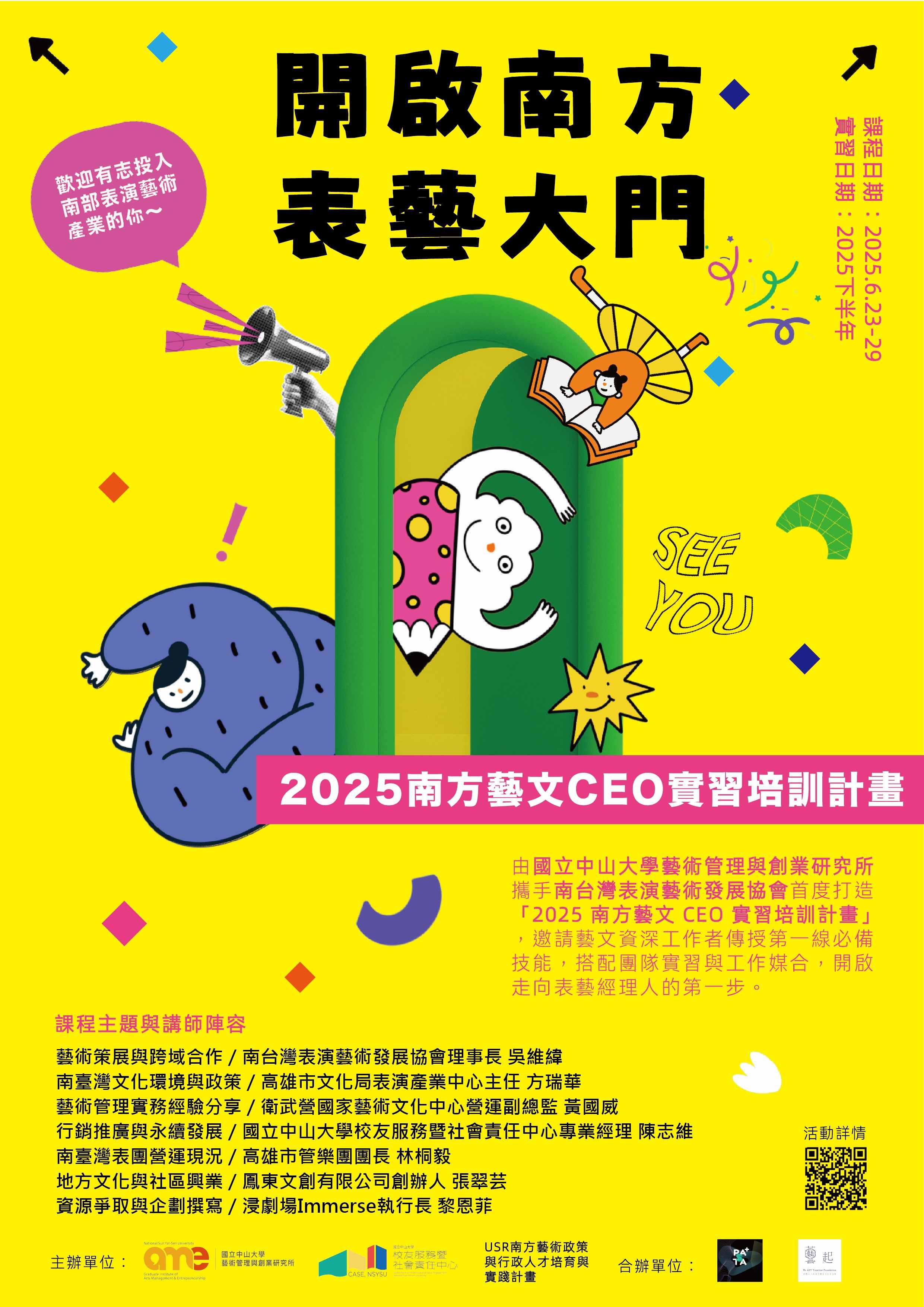 國立中山大學藝術管理與創業研究所、國立中山大學校友服務暨社會責任中心、種子型USR南方藝術政策與行政人才培育與實踐計畫