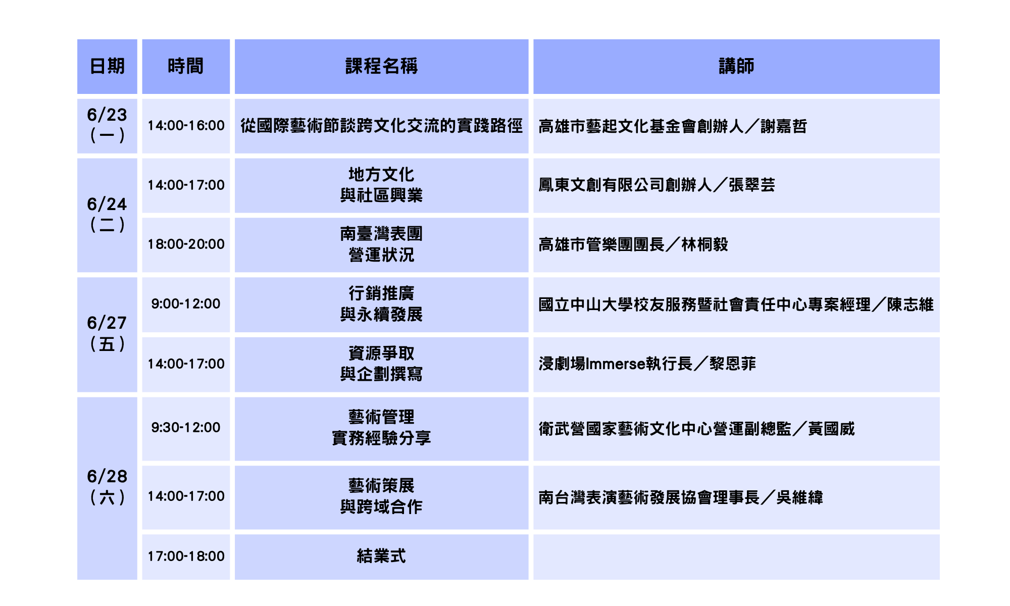 - 課程時間 : 2025年6月23日~6月29日