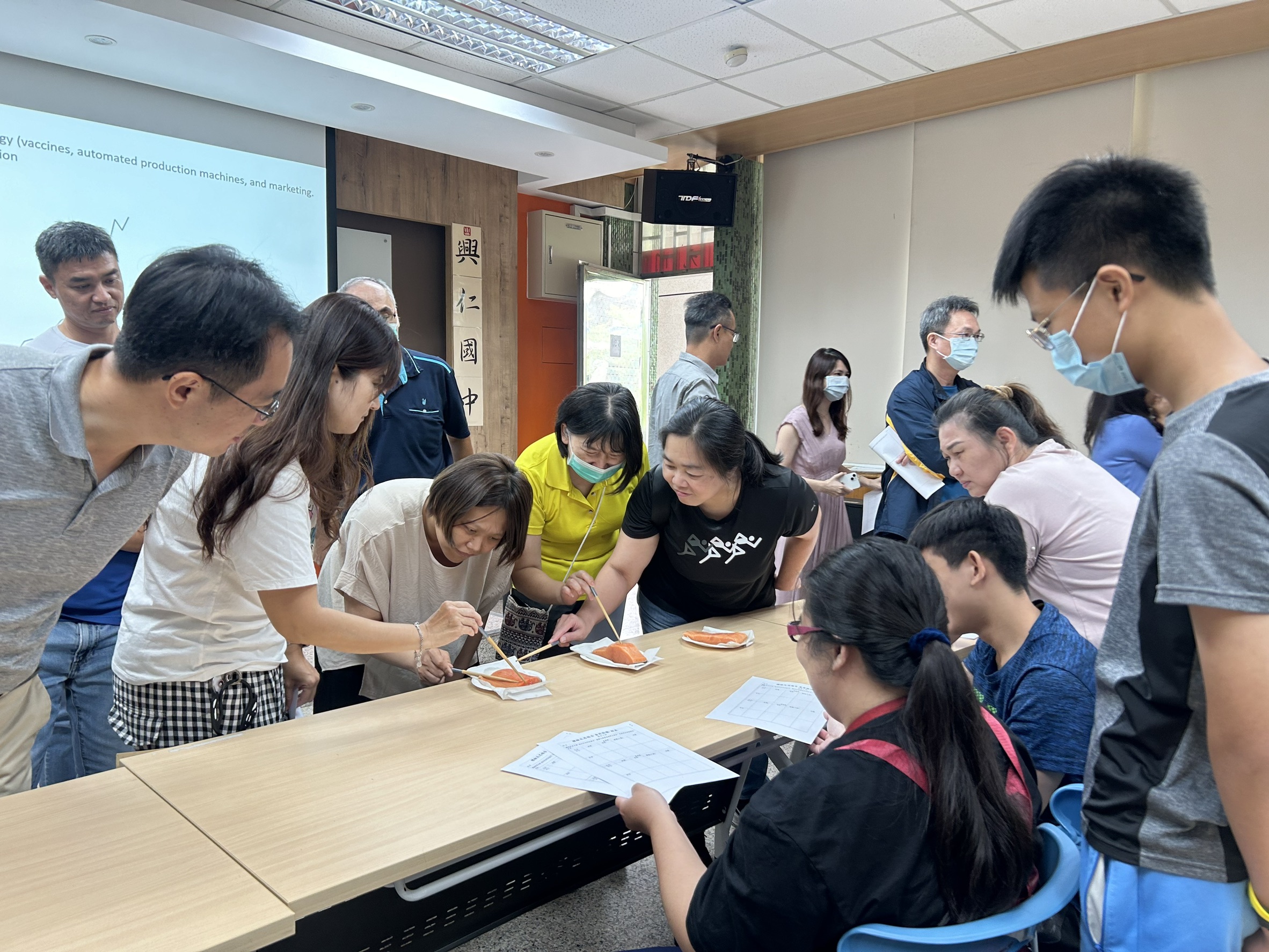 活動尾聲,林裕䕒老師引導參與師長們討論食魚教育在校園的實踐方式。有教師建議,若課程對象為低齡學童,或因應不同飲食習慣,可嘗試以水果或海藻取代魚類進行感官教學,降低成本與操作難度,同樣能引導學生認識食材與環境的連結。中山大學海院USR計畫團隊也將本課程陸續推廣至旗津國小、鼓山國小、興達國小等學校,希望藉由教育第一線教師的力量,將食魚教育落實於日常課程,讓學生從飲食出發,培養環境永續的價值觀與行動力。