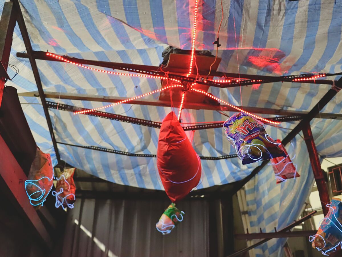 展區涵蓋府北公園與其周邊街區,今年共展出13件裝置藝術作品,由中山大學學生與在地社區協作完成。大學生與高中生的作品圍繞著策展主題創作的科技藝術作品,如「信仰404」、「鹽埕.續」,引領民眾走入七福商場、大溝頂等空間外,也引發他們對於宗教供品、在地美味的反思。以及由在地國小孩童創作的「食埕大孩」,以童眼詮釋記憶中的家常味;「盤中歲時」則為與揚帆主婦社合作,記錄婦女操持廚事的節氣與情感流轉。「這些作品並非只是視覺擺設,更是一種向社區學習的過程,讓藝術真正落實於日常之中。」
