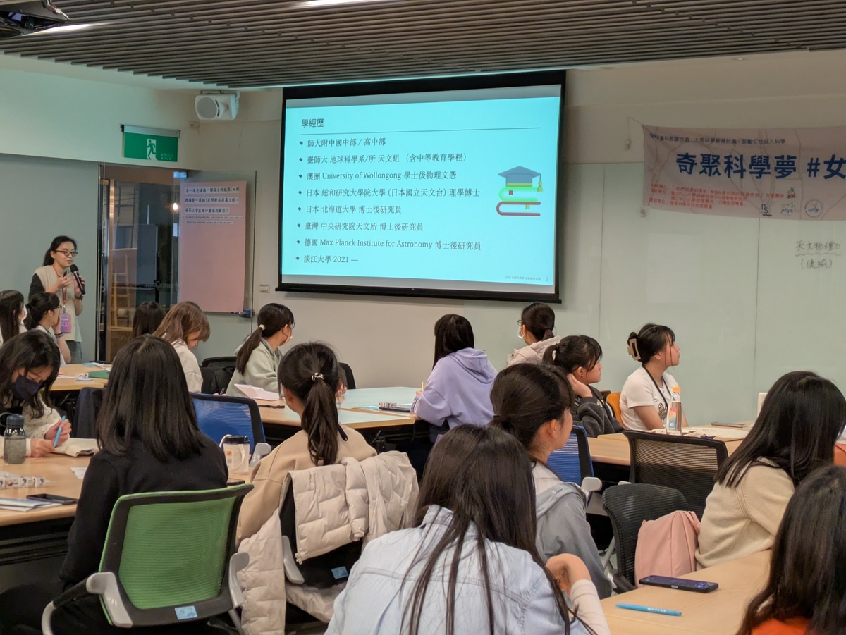 活動特別邀請來自淡江大學物理學系助理教授潘璽安、中央研究院物理研究所研究員林耿慧與高中女生分享職涯經驗。潘璽安除提及自身留學經驗與職場觀察,也分享自身的科學興趣啟蒙。從參加周末班的經驗中培養出「承諾想學,就必須持之以恆地對自己負責」,到影響走上科學之路的關鍵人物——用故事串起數學,讓公式顯得順理成章的中學數學老師,對比不同班的雙胞胎姊妹的際遇,指出「後天影響大於天生」,鼓勵學員以自信的態度面對數學及物理的學習,並及早規劃未來。