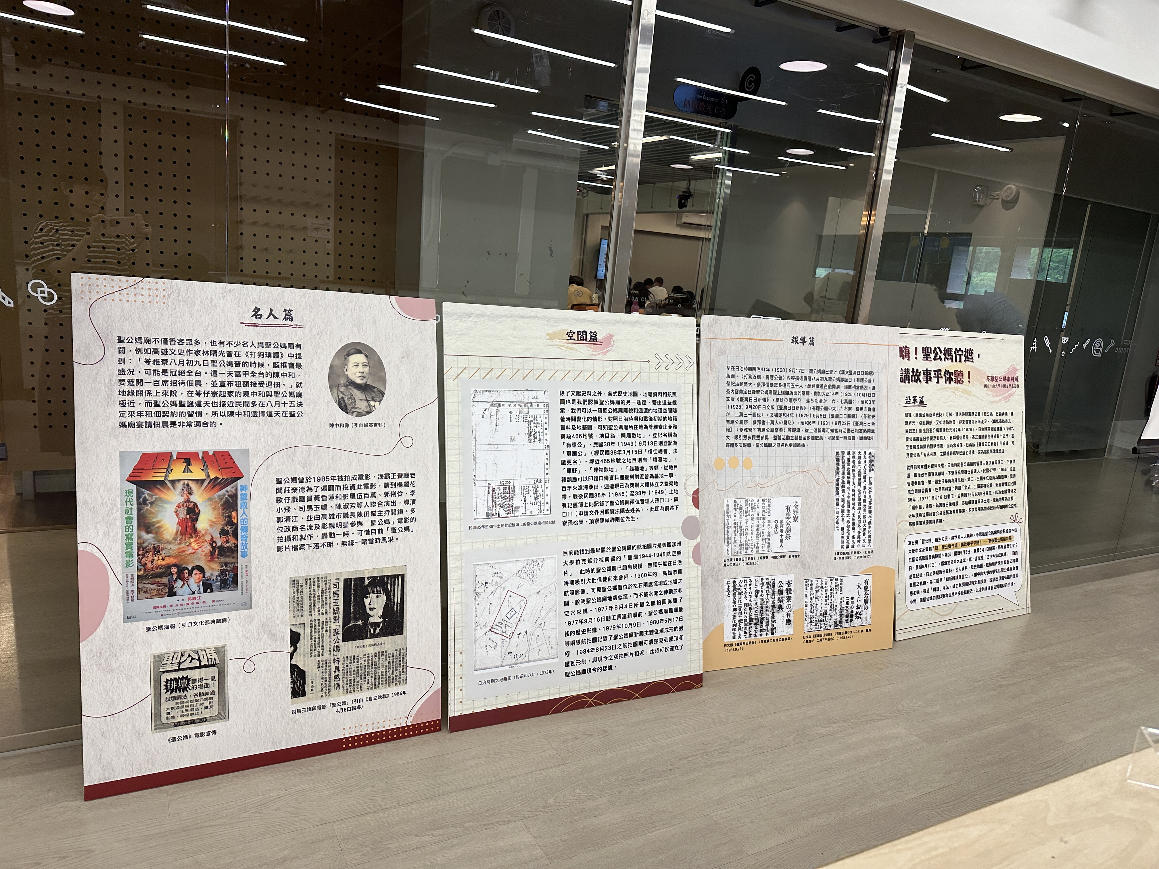本次講座涵蓋了豐富的課程成果,包含「家將文化探索體驗課程」、「問世工作坊」、「東港迎王課程」、「陰廟課程轉譯」、「體驗與轉譯成果」,這些課程強調了體驗式與實作,設計以多元面向切入,促進學生與傳統文化的深入互動。例如,「家將文化探索體驗課程」與高雄最早成立的八家將團——高雄地嶽殿吉勝堂合作,學習臉部彩繪的技法,並參與家將陣法的排演與出軍體驗,更真切地感受家將文化的精神與儀式規範。「陰廟課程轉譯」除了是講座成果亮點之一,更是文化傳承與再創造的核心。學生透過實地考察高雄的陰廟信仰,並以其為元素,設計具有創意的文化產品或策展企劃做為成果。理論與實作兼容的課程嘗試讓學生在認識文化背景之餘,更是開創民俗文化的新方向。