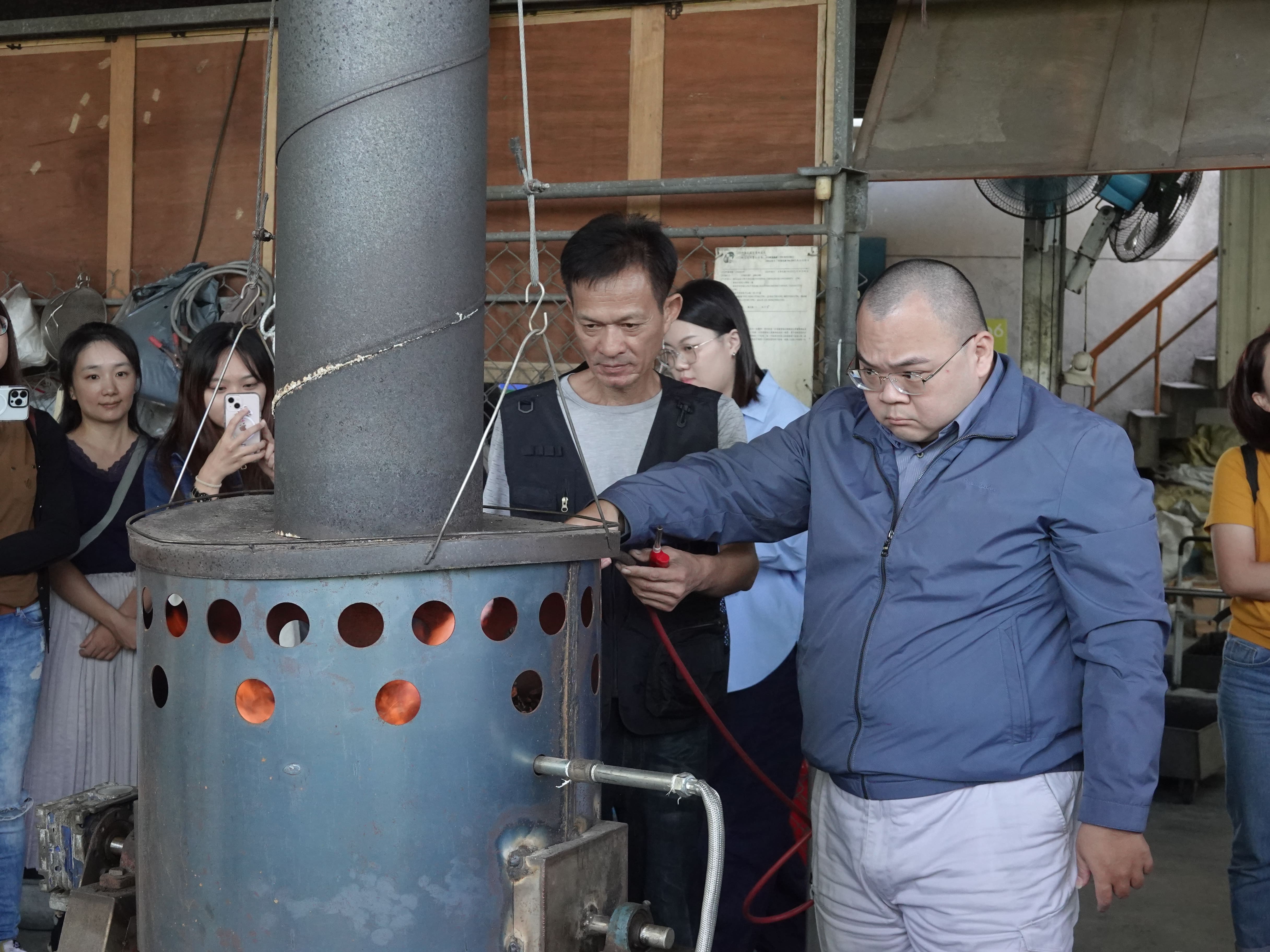 首站來到官田烏金社區合作社,理事李政憲分享面對農業廢棄物處理難題,選擇從源頭創造價值。團隊自2017年與崑山科技大學USR計畫合作接觸永續與生物碳概念後,開始思考如何解決官田區每年上千噸廢棄菱角殼的環保困擾。透過開發專利炭化製程,成功將「農廢」轉變為「烏金」,創造從空氣淨化、水質淨化到土壤介質的循環經濟應用。官田烏金李理事強調不在於一開始去想著要過怎樣的生活,而在於要如何去創造生活;透過對的方法,讓廢棄物有效運用,並以最低碳足跡創造就業機會,進而帶動後續商業運轉之價值。