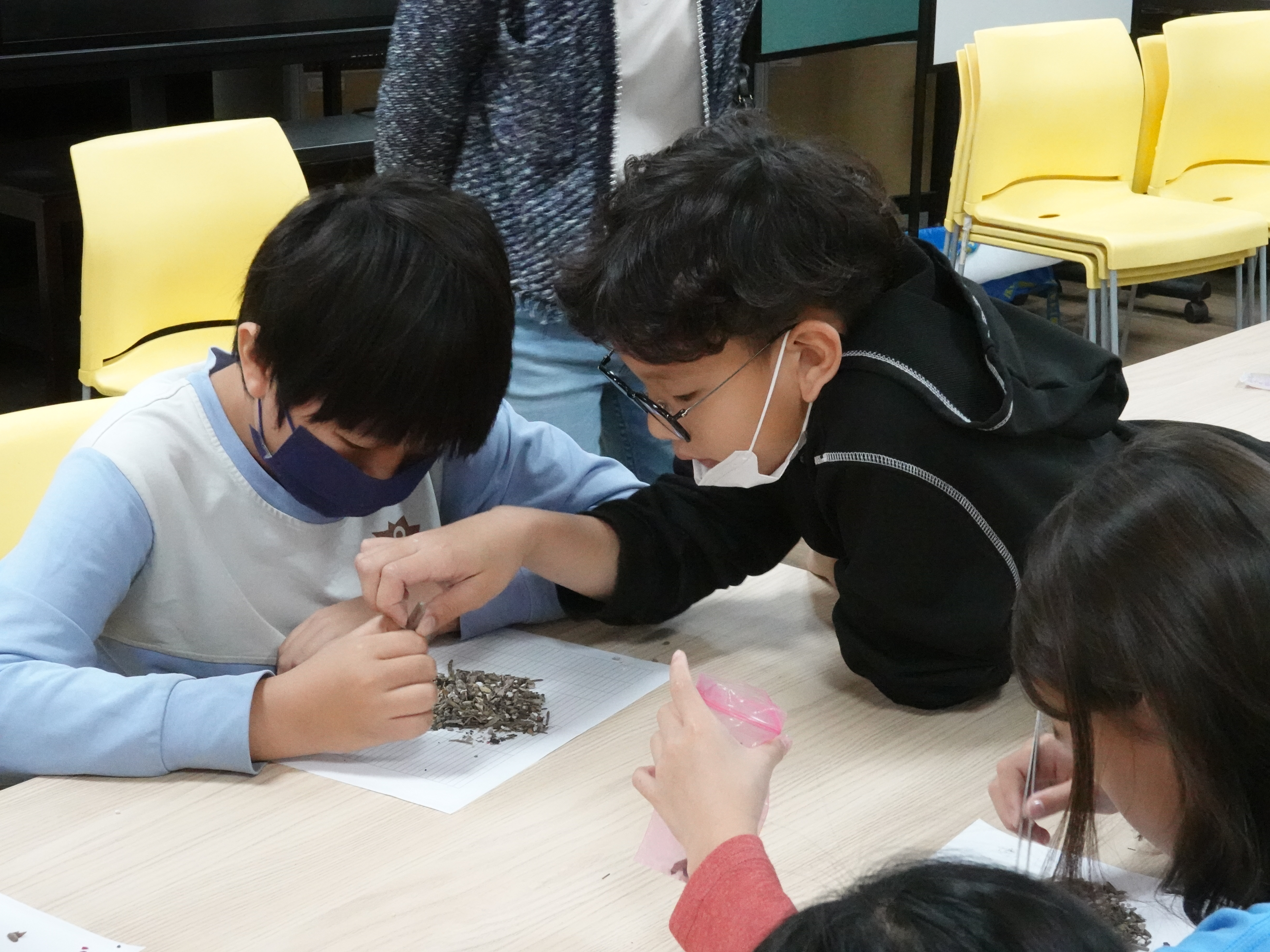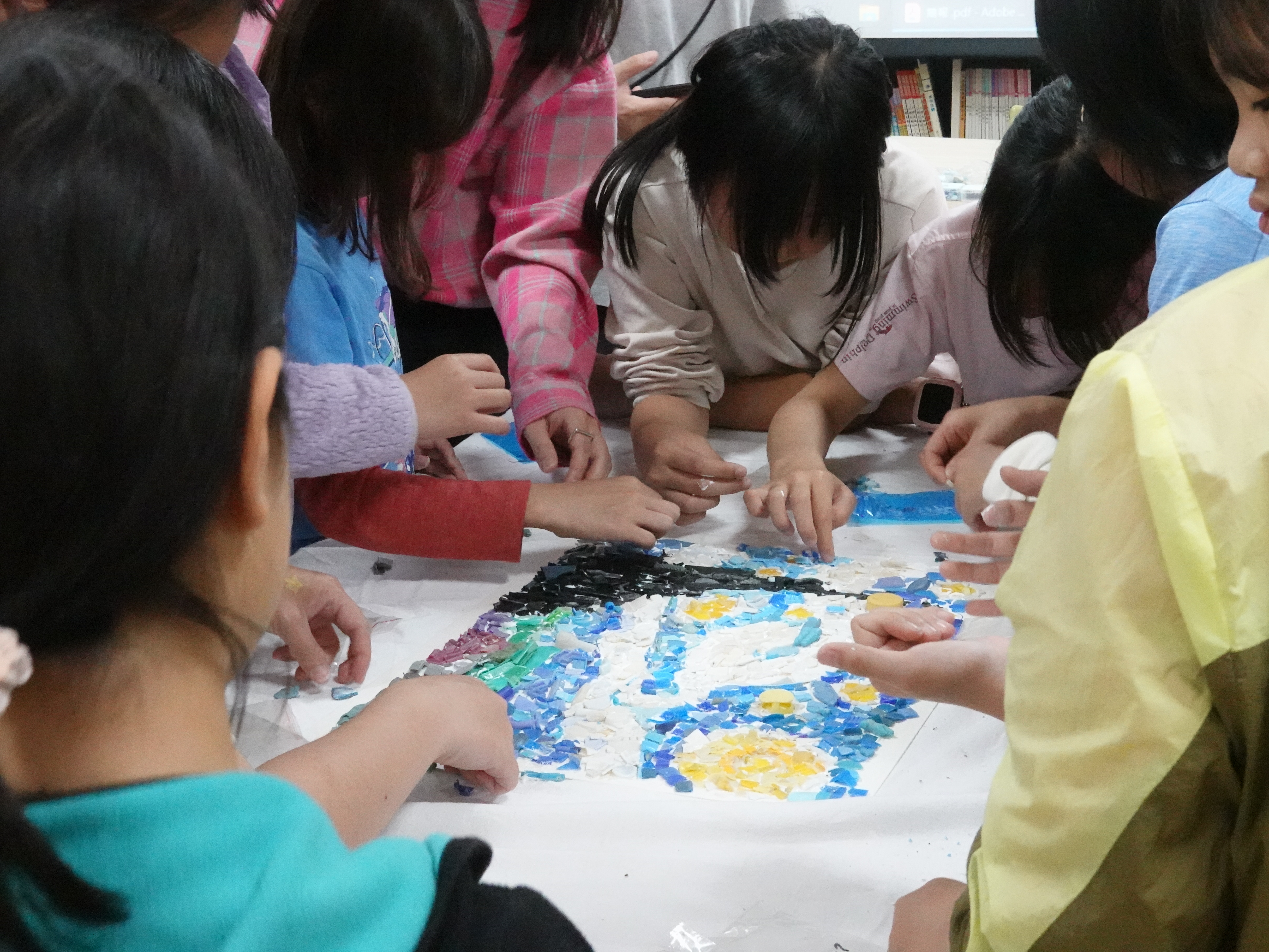 一同投入淨灘與國小課程的中山學生也對活動有所反思,企管系大三戴渝蓁同學表示:「有別於以往的淨灘,這次運用篩網篩出塑膠微粒的活動設計,不僅彰顯微粒已遍布在海洋每個角落,也對環境產生一定的衝擊。」公事所碩士生曾湘琦則有感藝術設計帶來的力量:「提案人將塑膠微粒設計成教材,不僅學生練習分類,也合作拼貼成世界名畫的方式,不禁令我思考,垃圾與藝術的差別,或許就取決在人的觀看視角而已。」