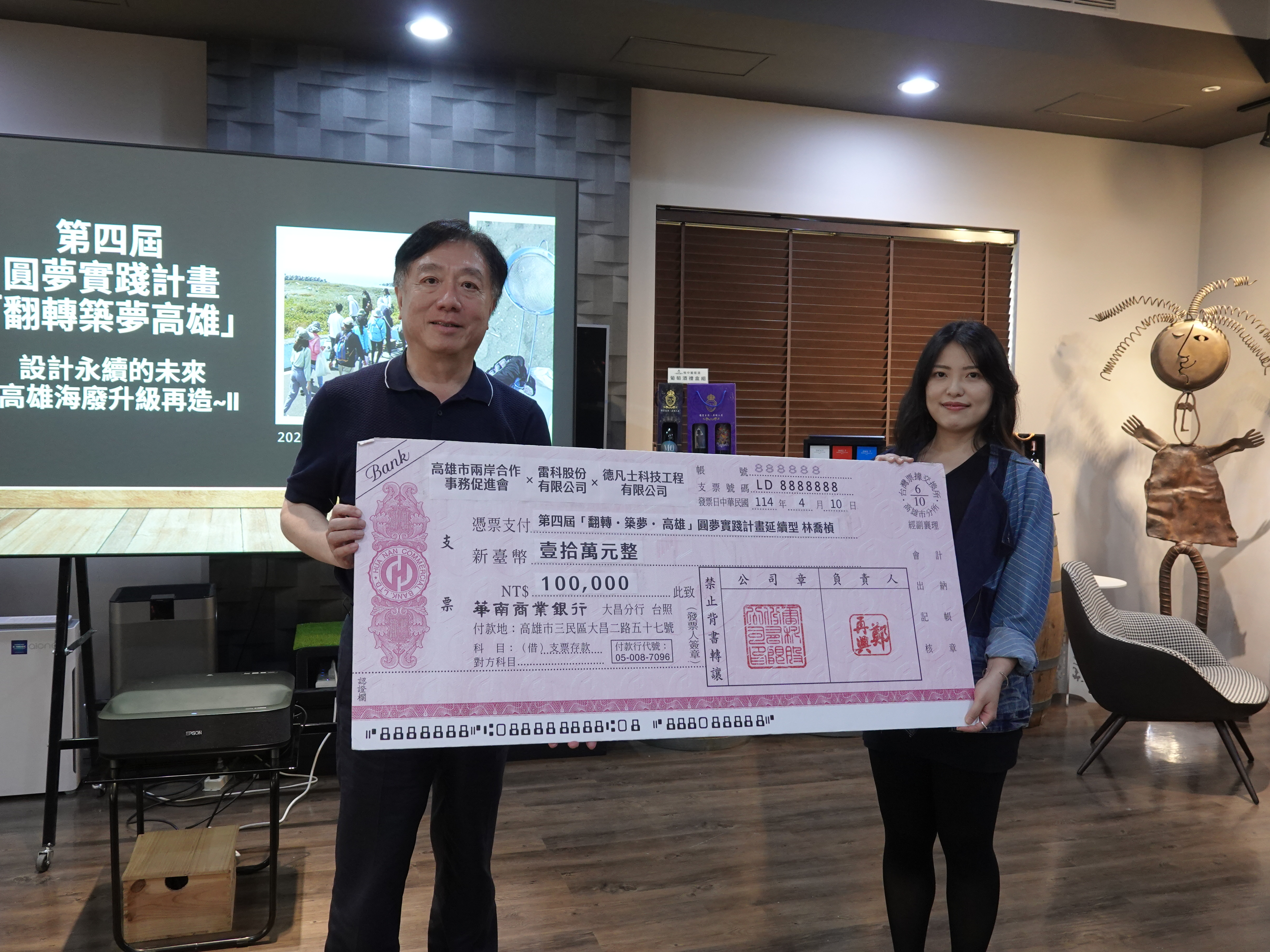 第四屆「翻轉‧築夢‧高雄」圓夢實踐計畫由雷科股份有限公司、國立中山大學管理學院《產學合創.在地共榮—共構地方永續協作平台2.0》USR計畫、高雄市兩岸合作事務促進會、德凡士科技工程有限公司共同推動。本屆共計投入70萬元圓夢獎助金,支持五組社會實踐提案,類別包括海洋教育、長照關懷、單親議題、永續發展等。其中由林喬楨小姐提出《設計永續的未來~高雄海廢升級再造I+II》深獲雷科股份有限公司肯定,提供高達20萬元圓夢獎助金,強化實踐能量。