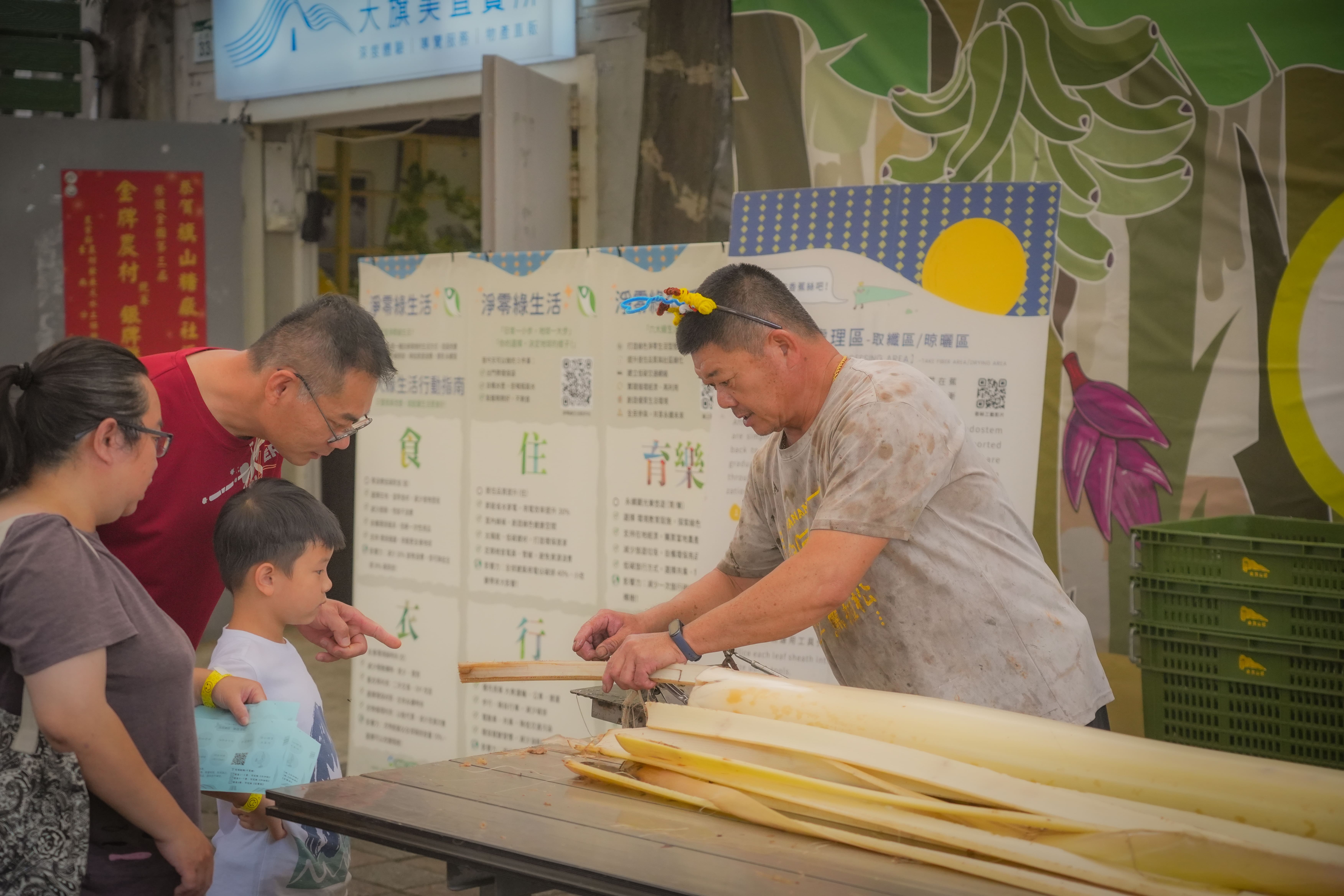 今年中山管院USR再度攜手旗山糖廠社區,活動以「淨零綠生活」、「里山精神」兩大核心出發,設計多項寓教於樂的深度體驗。包含以香蕉、糖業為主題的闖關遊戲,讓員工一同探索香蕉全部位再利用、糖業文化等農村智慧;結合循環經濟的精神,利用香蕉假莖或蕉葉的纖維製成香蕉再生紙、香蕉纖維,邀請員工寫下對企業的祝福;也規劃香蕉絲水苔球、金釀果醋等DIY體驗,讓員工從中體會「減廢」、「循環」與「友善土地」的價值。