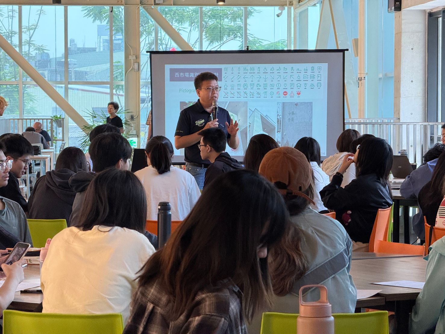 活動由屏東縣政府城鄉發展處工商科林士弘科長開場,介紹屏東縣國土計畫的整體架構,並以屏東西市場為例,說明縣府在2024年投入近2億元進行現代化改建的政策背景。市場在更新後導入綠建築理念、重新調整攤商配置並採用創新招商方式,意在提升市場形象並帶動地方商機。然而林科長也指出,市場啟用後雖曾吸引大量人潮,但仍面臨人流下降、攤商營收不穩、退租情況增加與市場定位模糊等挑戰。他強調,公有市場治理涉及產業鏈結、自治機制、營業時間彈性及生活圈消費習慣等多重面向,是國土計畫與都市治理中兼具經濟、文化與社會意涵的重要議題。簡報後由林士弘科長與廖茂能專員帶領師生走訪市場各區域,讓學生直接感受市場空間配置與實際運作現況。