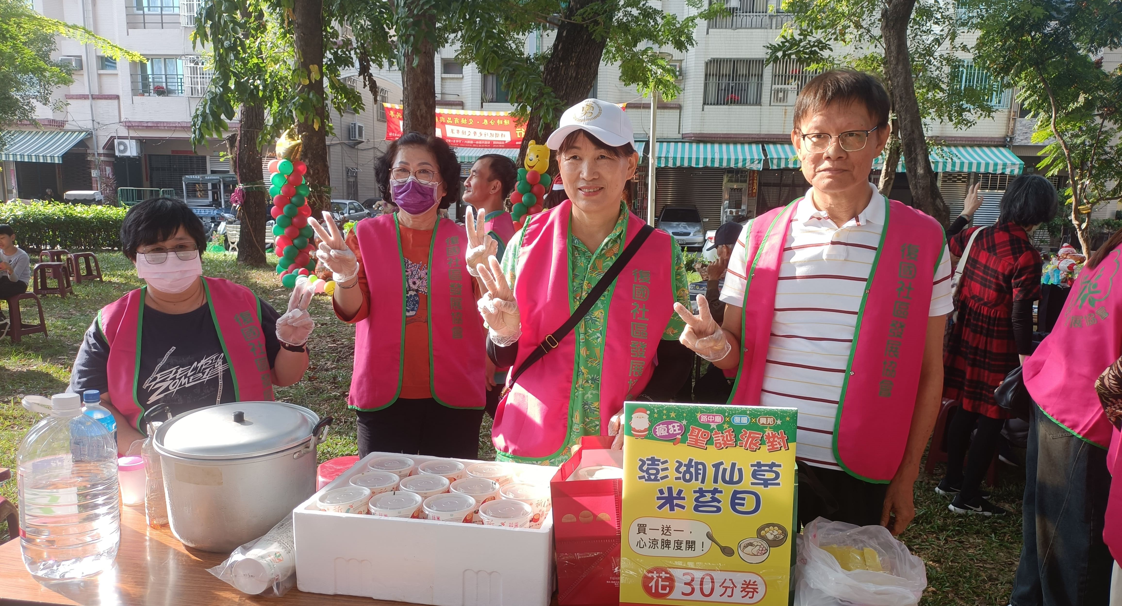 現場攤位設計豐富內容,如復國社區帶來充滿童趣與傳統色彩的彩繪紙傘、拉密桌遊現場PK賽,並提供應景的冬至搓湯圓體驗與澎湖風味仙草。興邦社區則以園藝與社區教育主題,推出禪繞畫種子創作、水苔球與多肉植栽,更設計趣味的家暴防治猜猜樂,讓民眾在互動中學習生活法律知識。帶著孩子來參加的許小姐分享道,這種活動比金錢交易更有溫度,感覺像是大規模的鄰里聚會,特別是能看到孩子透過參與活動賺取時間貨幣,再兌換婆婆、阿姨們親手製作的手工藝品,是非常有意義的體驗。復國社區的藍先生也提到,跨社區合辦讓市集規模更盛大、內容更豐富,年輕人與長輩一起互動跳舞,難得感受到跨世代共融的活力。