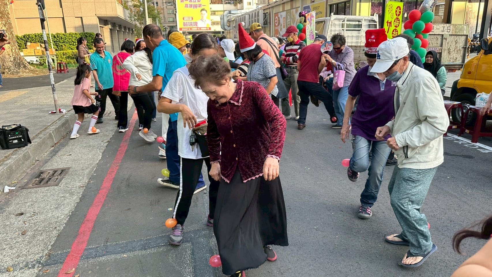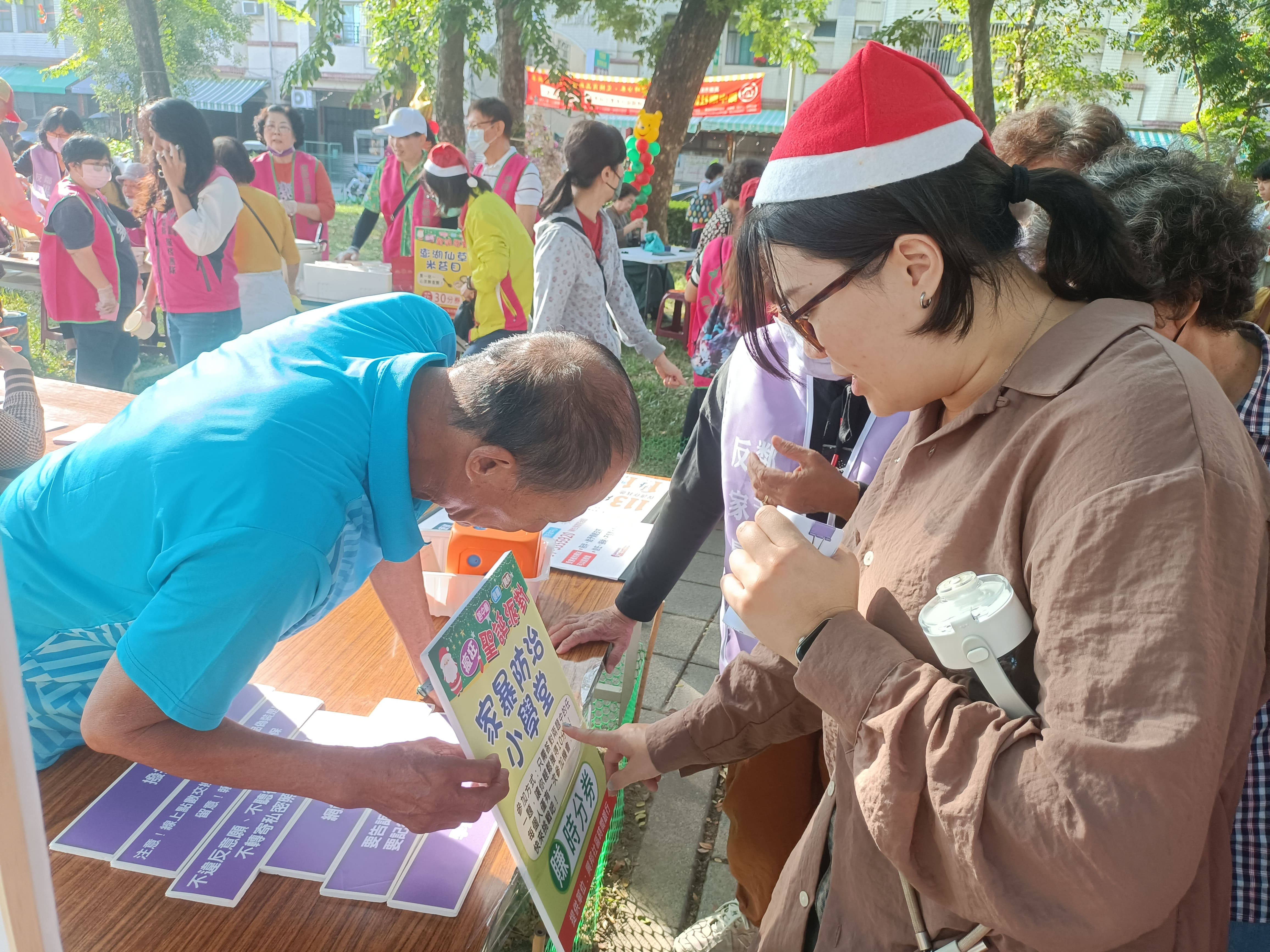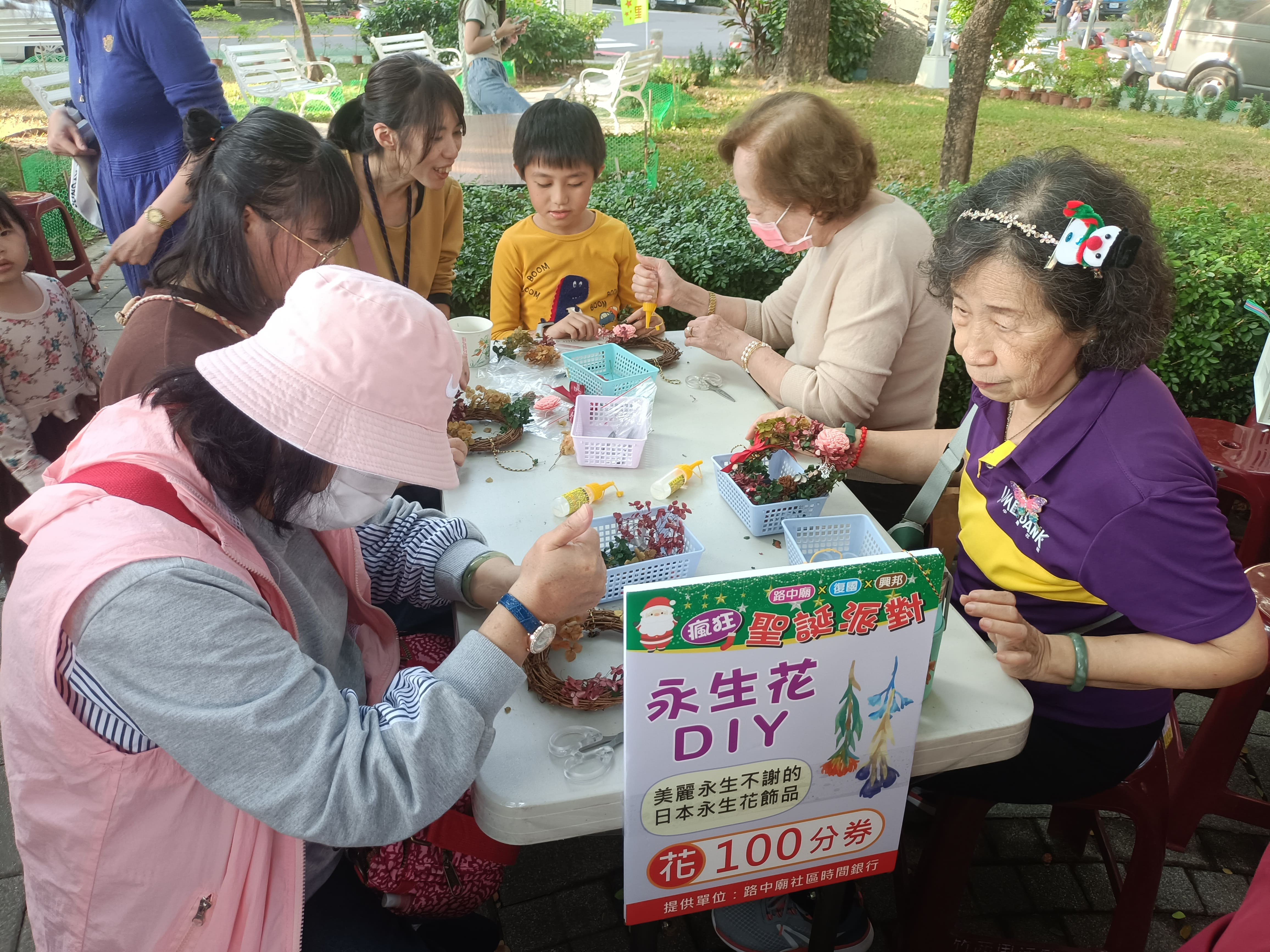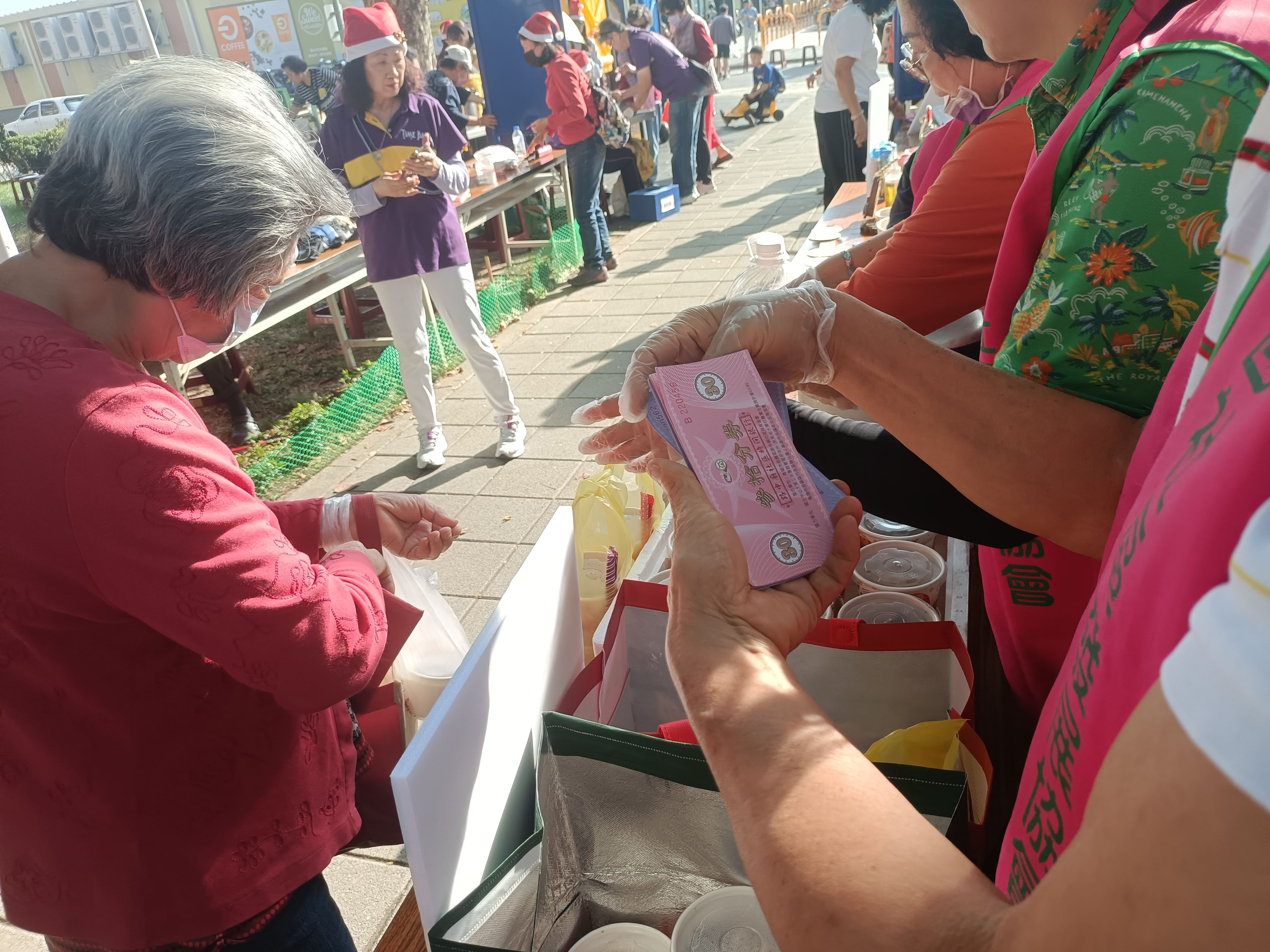你能想像,在市集買美食、玩手作,竟然是用「時間」來交換嗎?面對高齡社會參與與社區照顧需求等問題,國立中山大學管理學院USR計畫長期深耕地方,於今年(114年)集結前鎮區路中廟、復國及興邦三個社區共同成立「前鎮時間銀行聯盟」,發行「社區時間貨幣」作為社區互助媒介。12月21日,三個社區在竹西里兒童公園,聯合舉辦「瘋狂聖誕派對成果市集」,展現時間銀行推動的階段性成果。現場年輕學生與社區長輩在遊戲與服務中頻繁互動,打破世代的藩籬,熱鬧非凡。