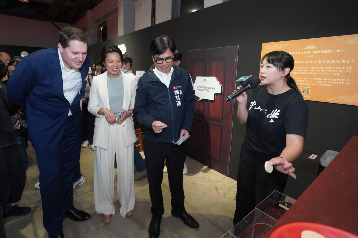 高雄市陳其邁市長致詞時表示,高雄長期面臨颱風與強降雨等挑戰,市府積極推動智慧防災與氣候調適計畫,強化城市基礎建設與社區共備網絡,依各類災害特性採取多元應變措施,打造韌性城市。他肯定中山大學在USR行動中的努力,將防災教育轉化為生活經驗,讓青年學子成為推動城市韌性的力量。「城市的韌性,不只是基礎建設,更是人與人之間的信任與合作。這場展覽讓防災變得可親、可學、可行,這正是我們希望的城市樣貌。