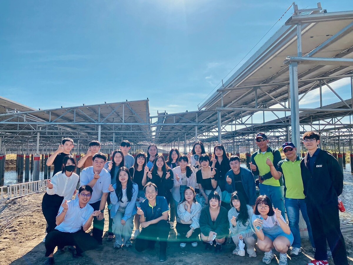 師生實地參訪可寧衛,其位於高雄彌陀的魚電共生案場為高雄地區規模最大的示範場域。太陽能發電系統架設於魚塭之上,有效提升土地利用效率,更兼顧養殖收益與綠能發電效益,實現環保與產業雙贏。廠區架設太陽能板,太陽能板上方也設置小型花灑,清除板面灰塵也具備降溫效果,有助於提升發電效率,展現智慧運維的設計巧思。此外 也至封存掩埋場觀摩可寧衛的固化處理技術及一般事業廢棄物的整套清運流程,涵蓋分類、再利用、焚化與能源轉換,形成閉環式循環體系。師生並與大創綠能董事長陳煜賢面對面交流,他分享了大創綠能在太陽能產業的發展策略,並針對未來趨勢提出前瞻性的見解,從技術創新到政策因應,提供寶貴的實務觀點與產業洞察。