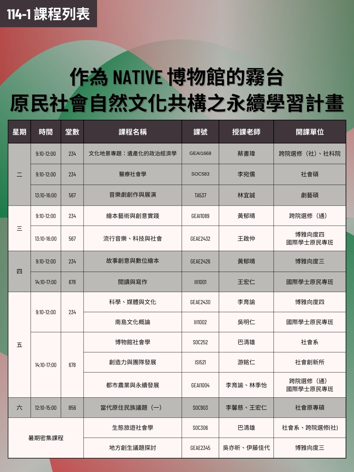 大學特色類深耕型-作為 NATIVE 博物館的霧台-原民社會自然文化共構之永續學習計畫