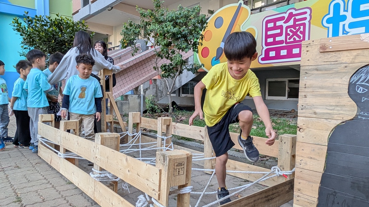 中山攜手台虹科技 贈鹽埕國小自製木棧板遊具
