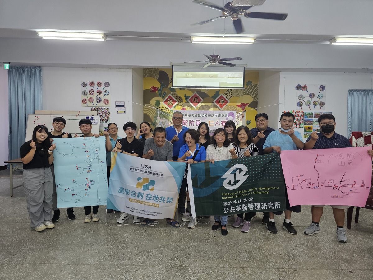 每一幅社區地圖上的標記,都是在地居民生活過的情感印記。國立中山大學公共事務管理研究所師生團隊攜手義仁社區發展協會,於高雄市大寮區昭明義仁聯合活動中心舉辦「社區共感地圖設計工作坊」。活動由資深社區工作者藍美雅擔任業師,引領學生與社區居民共同討論並繪製「社區風土記憶地圖」。透過跨世代交流與地方故事分享,將社區景點、傳說與日常記憶化為地圖上的獨特元素,具體呈現在地生活脈絡與文化風貌。